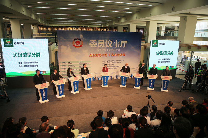 3月16日下午,以“关注垃圾减量分类”为主题的第二场“委员议事厅”在中心书城南区大台阶举行。本场“委员议事厅”由民革深圳市委会承办,8名市、区政协委员及两位专家围绕垃圾减量分类工作中的热点难点问题展开了激烈讨论。活动吸引了300多名市民热情参与。