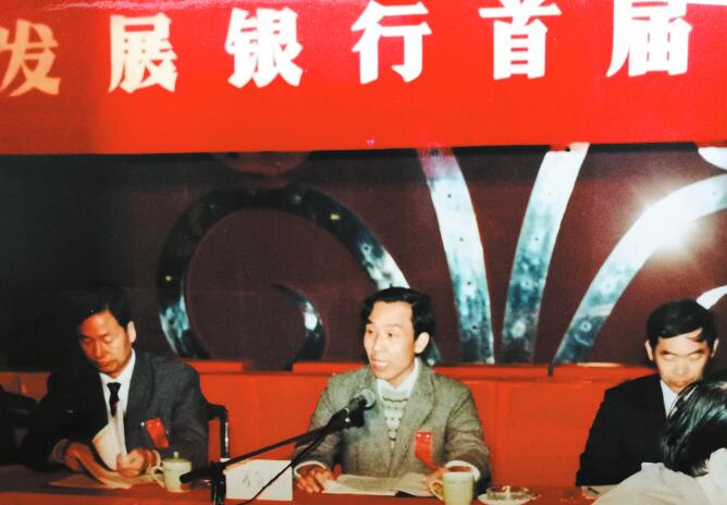 1987年12月,刘自强在“深发展”首届股东会上讲话。
