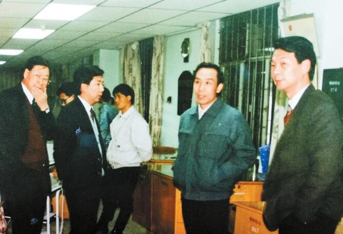 1987年终,时任“深发展”董事长刘自强(右二)慰问员工。