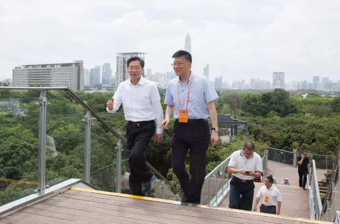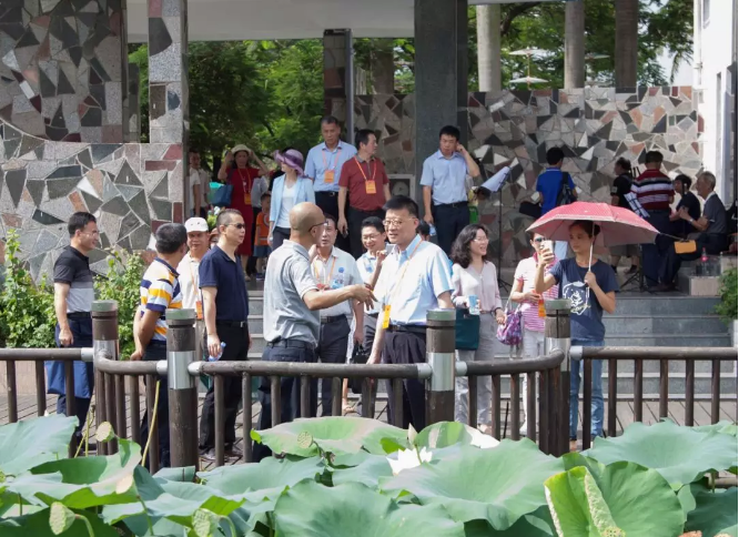 调研组赴洪湖公园了解深圳市第29届荷花展开展情况,赴福田高铁站查看立体绿化成效,沿深南大道体验绿化品质提升工作进度,在香蜜公园探讨公园设计和管理理念。